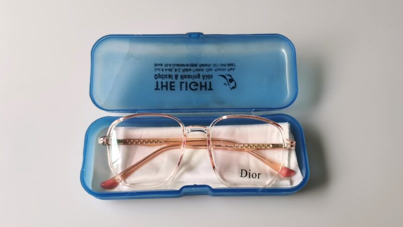 Our replica of Dior’s eyewear, in a vibrant gold-pink color.