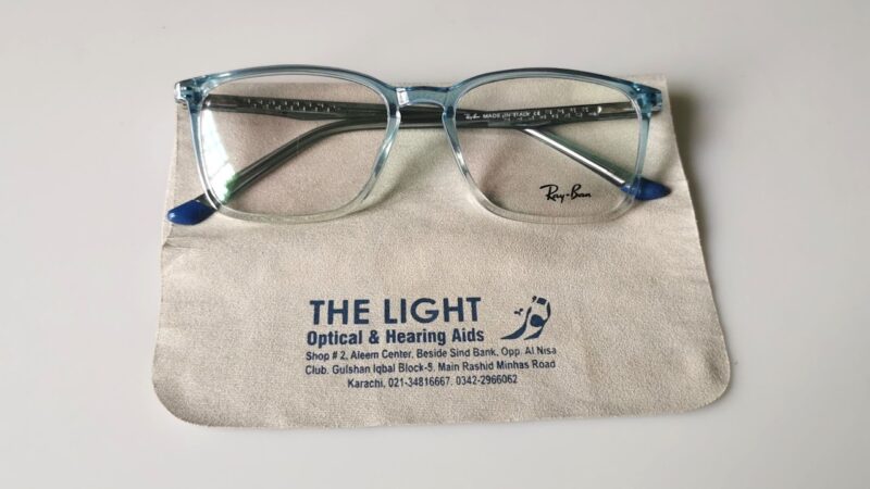 Our vibrant replica of Ray-Ban’s eyeglasses in blue.